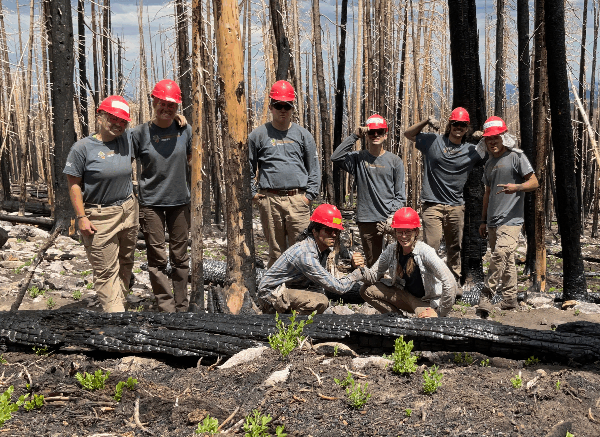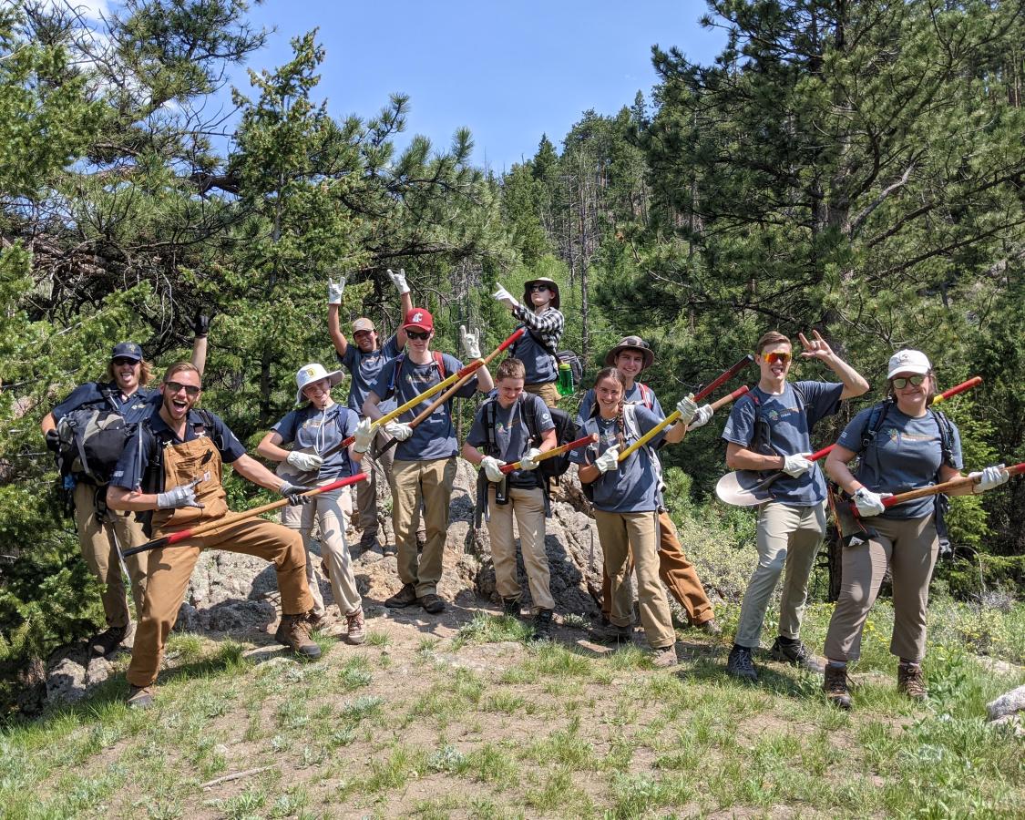 The US Forest Service Trail Crew 18 – 30 years old crew serves and camps in Arapaho & Roosevelt National Forest lands while performing trail construction/repair and maintenance projects within the 208,913 acres of forest that were damaged in the 2020 Cameron Peak Fire. This crew works in partnership with US Forest Service staff to reopen trails for public use and to prevent erosion in sensitive post-fire areas. Unique education opportunities with this crew include wildfire and post-fire impacts, purpose of recreational areas and personal and professional development.