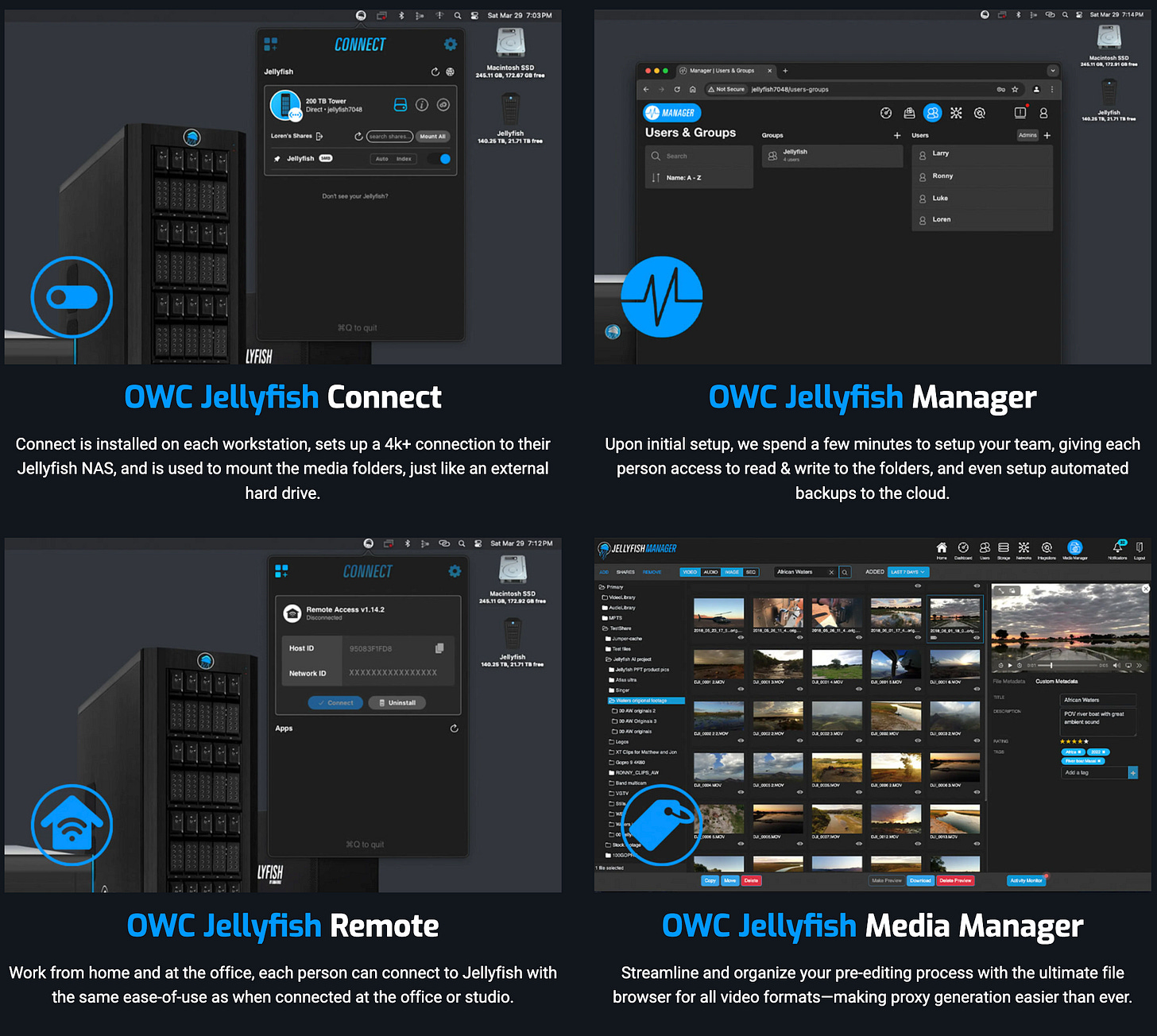 Other World Computing (OWC®), a trusted leader in high-performance storage, memory, connectivity, software, and accessories that empower creative and business professionals to maximize performance, enhance reliability, and streamline workflows, today announced the latest software release for its acclaimed OWC Jellyfish network-attached storage (NAS) solution. The new updates, designed specifically for video production teams, introduce a redesigned Jellyfish Manager and an all-new Jellyfish Media Manager, delivering smarter media workflows, deeper integrations, and unprecedented visibility into team activity and storage performance.